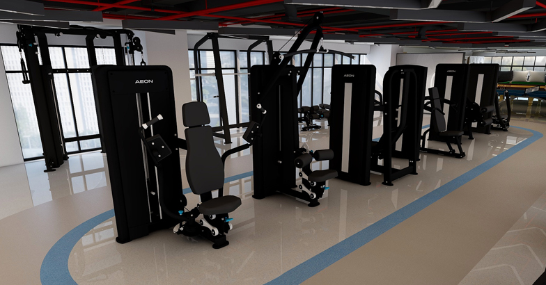 AEON A10跑步機(jī)6臺(tái)、85D橢圓機(jī)2臺(tái)、B8+動(dòng)感單車2臺(tái)、85R臥式健身車2臺(tái)及CS系列力量鍛煉器材11套。